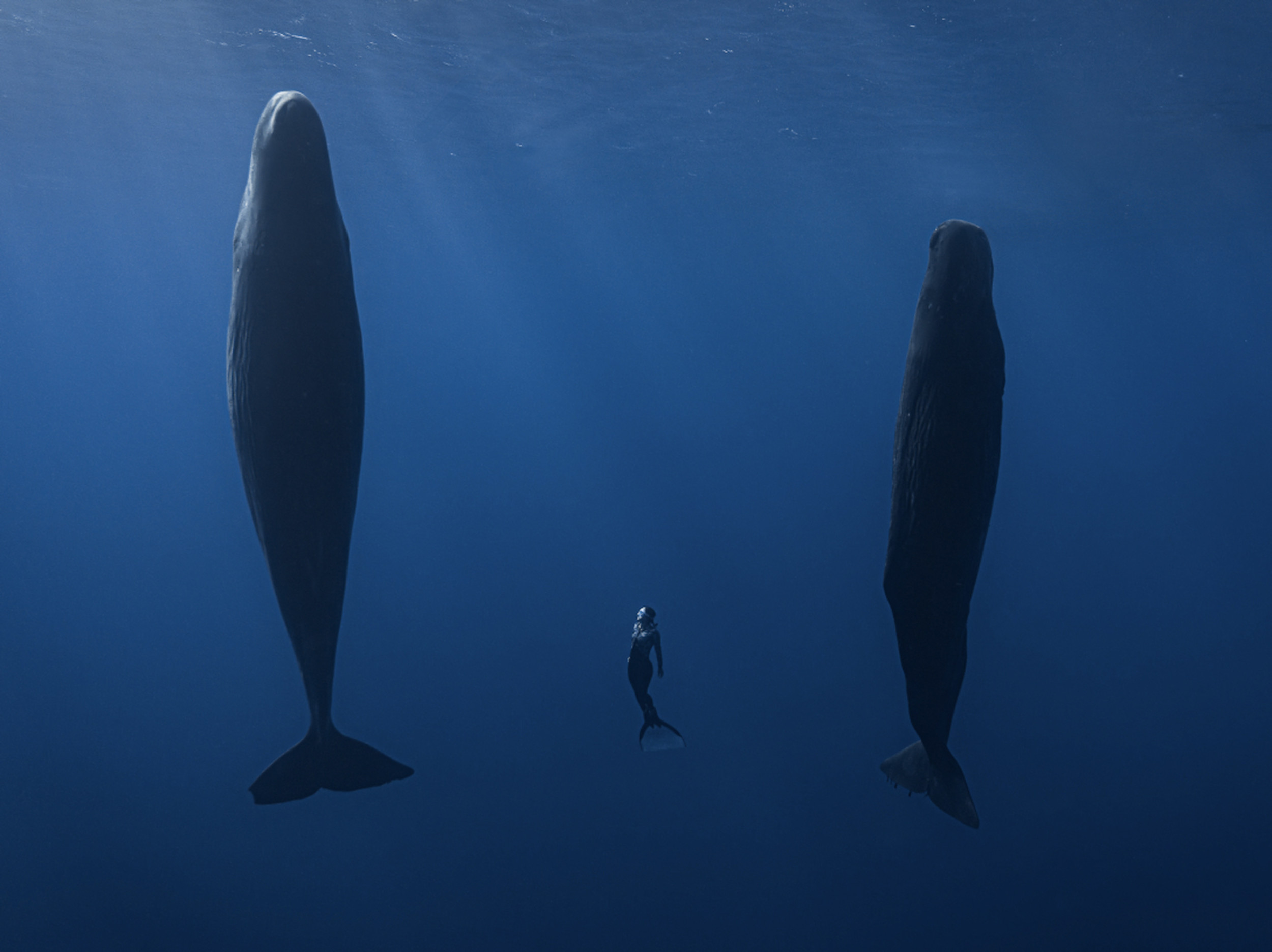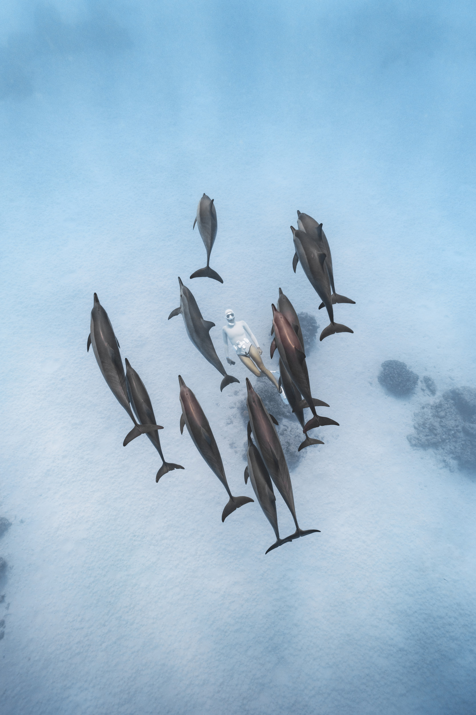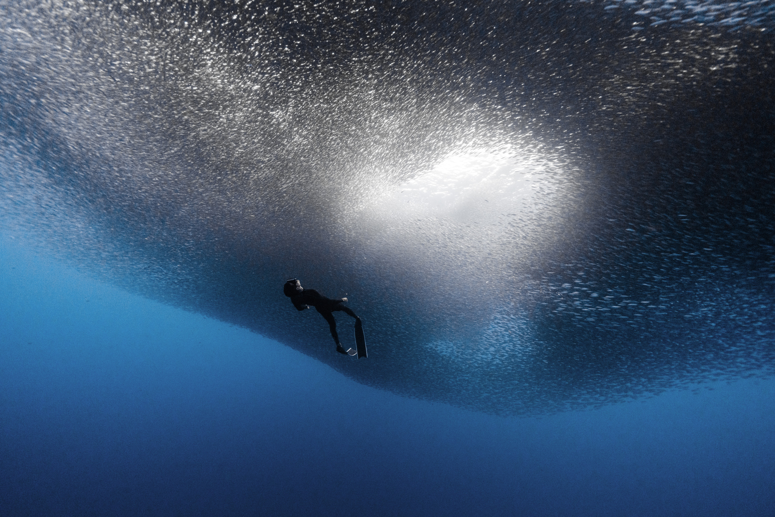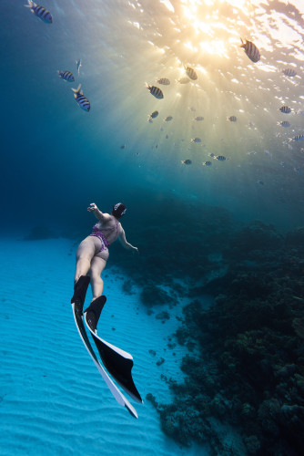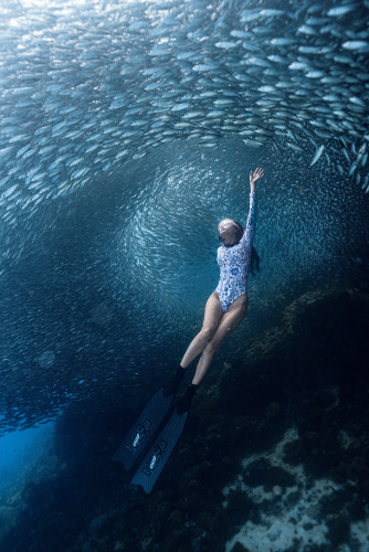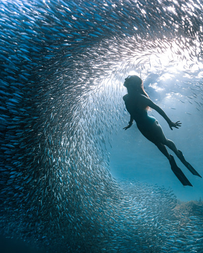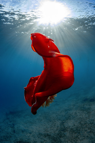 Необычное прочтение темы этой номинации. Фридайвер в очень динамичной позе двигается на встречу воздуху... но не тому что на поверхности, а тому что идет из глубины. Фотография нарушает многие привычные правила подводной съемки, но возможно именно это выделяет ее среди других.